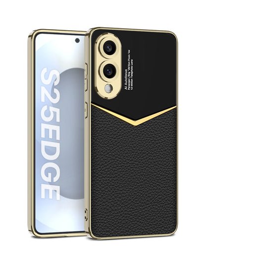 Galaxy S25 Edge Gold Plated Leather Protective Case