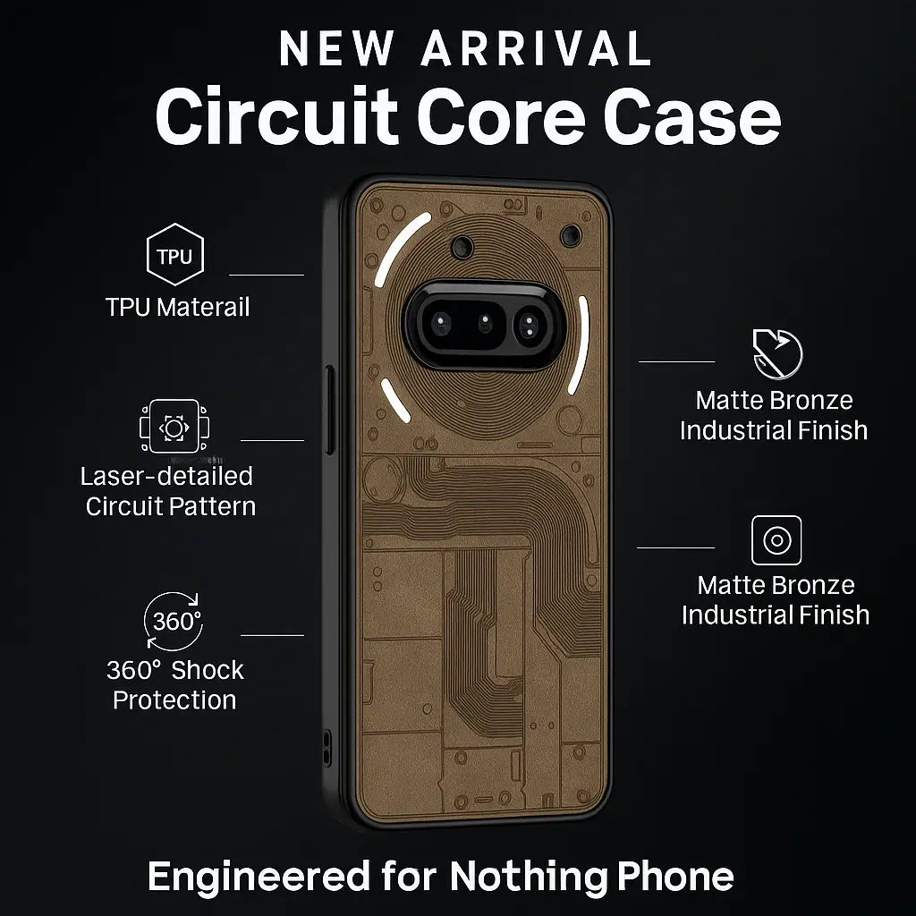 The Circuit Core case is more than protection — it’s a declaration of design, engineered for the Nothing Phone. Featuring a futuristic copper-tone circuit pattern, this case draws inspiration from the inner workings of technology, bringing the heart of hardware to the surface.