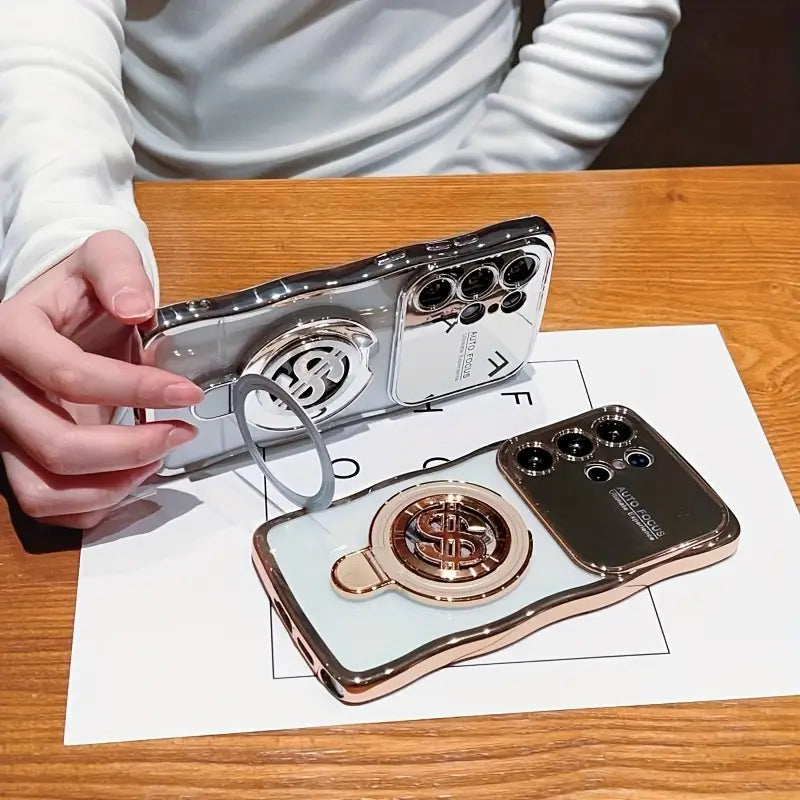 ​Introducing the Dollar Spin Case , a fusion of luxury and functionality. This case features a rotating gold coin design encased within a transparent electroplated shell, offering both aesthetic appeal and robust protection.​
