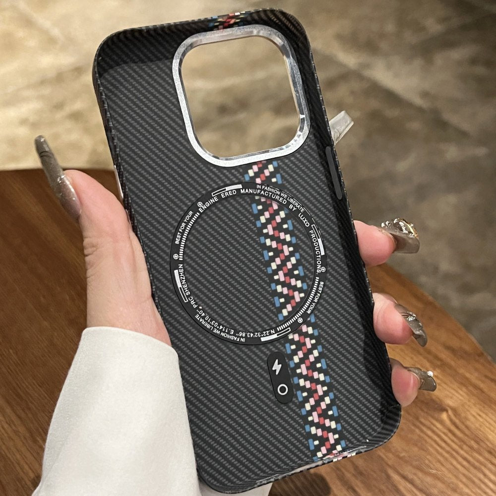 Experience unparalleled style and protection with the Embossed Carbon Fiber Magnetic Case. This premium case combines a sleek, embossed carbon fiber pattern with a durable hard shell design, ensuring your phone stays safe from scratches and impacts.