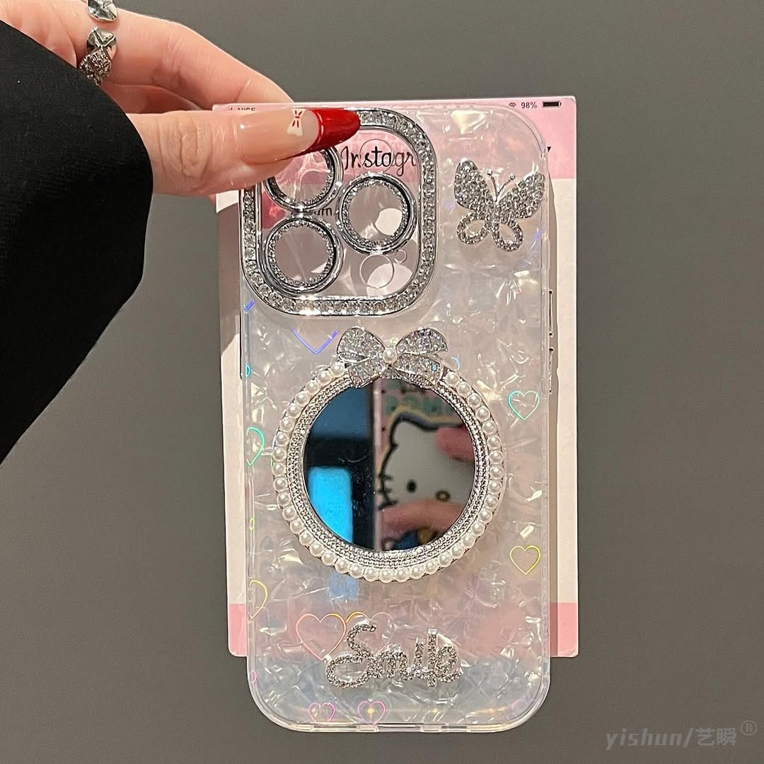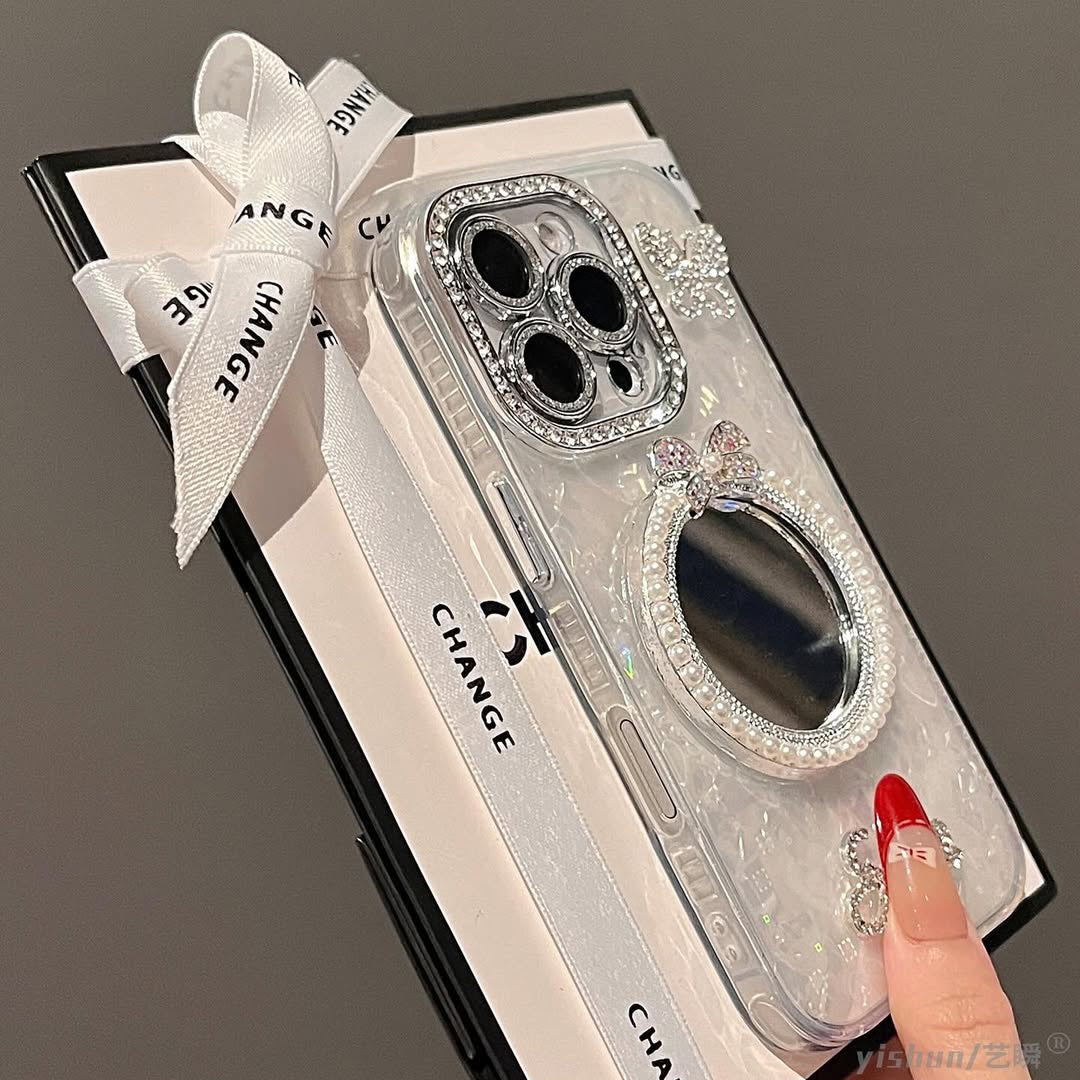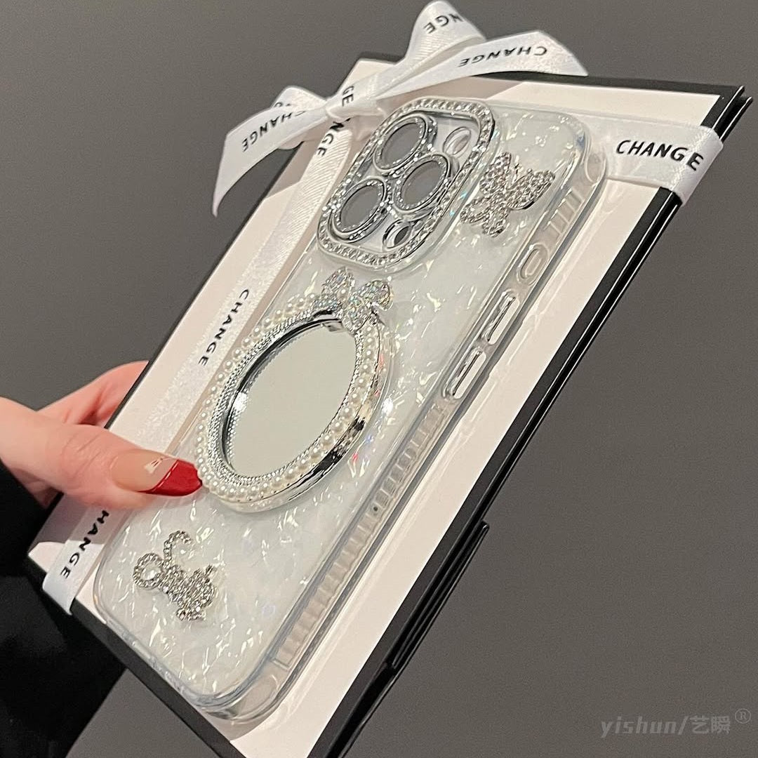 Add a touch of elegance to your everyday look with the FairyGlow Case. This dazzling phone case features a pearlescent finish, a sparkling bow-accented mirror, and rhinestone-studded elements that radiate glamour. Whether you're snapping a selfie or checking your look, this case keeps you stylish and selfie-ready wherever you go. Perfect for fashion lovers who adore chic details and all things shiny!