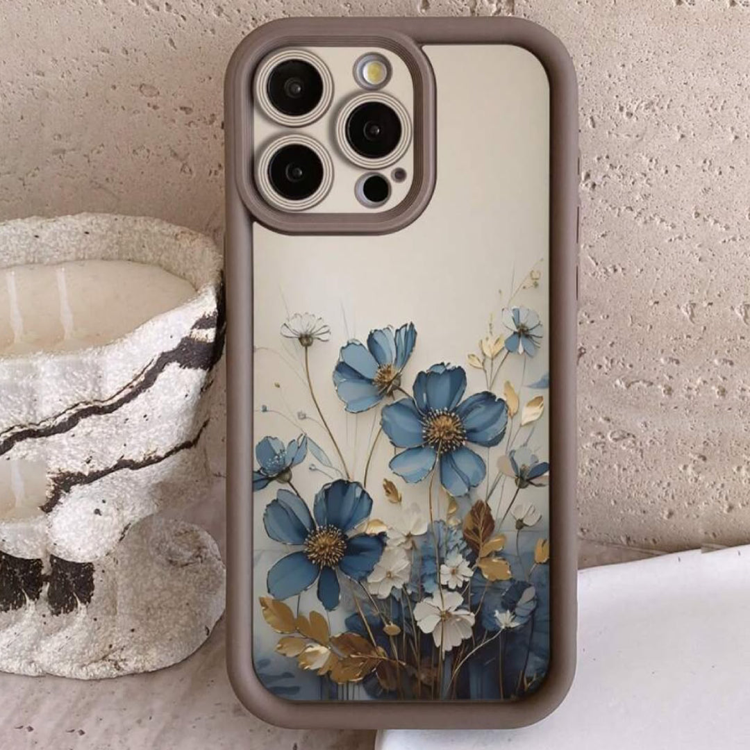 Turn your phone into a garden of grace with Floravue a floral phone case crafted for those who adore artistry and sophistication. Featuring an intricate bouquet of embossed blue and golden flowers, this case blends protective strength with timeless beauty.