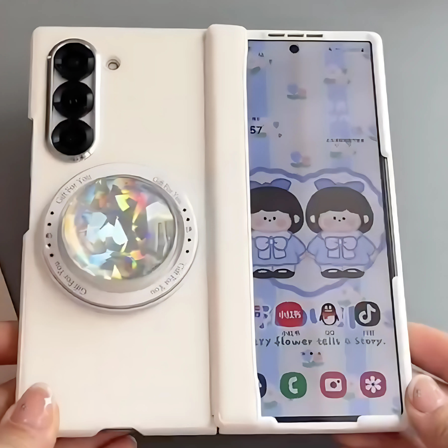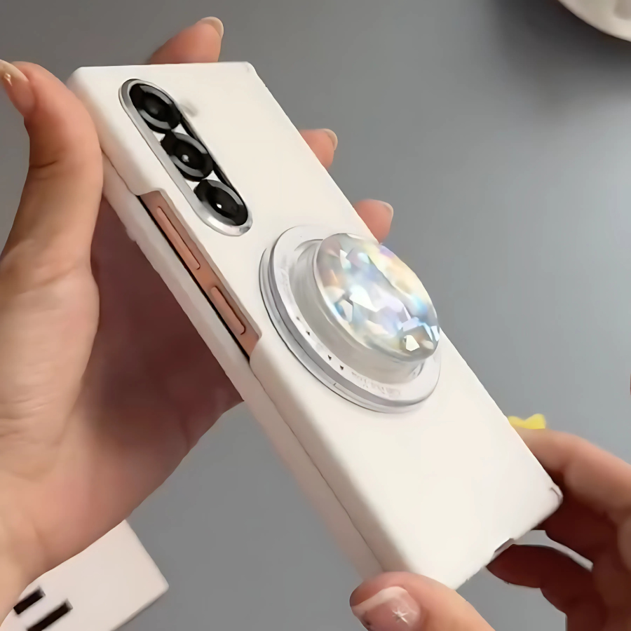 Elevate your style with this sophisticated foldable phone case, featuring a dazzling gemstone-style grip for enhanced comfort and elegance. Designed to provide superior protection while adding a unique touch of glamour, this case seamlessly blends functionality with aesthetics. Its sleek construction ensures durability, while the foldable design enhances usability.
