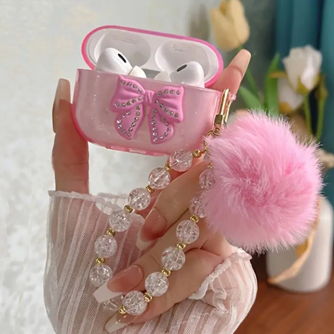 Add a touch of sparkle to your everyday essentials with the Glitter Bow Charm AirPods Case. Designed for those who love a chic and girly aesthetic, this case features a shimmering finish with a rhinestone-studded bow for a glamorous touch.
