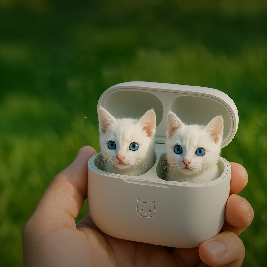 Unleash an overload of cuteness and crisp sound with Kitten Beats โ the only audio experience where style meets snuggles. Designed for feline lovers and audiophiles alike, these earbuds come housed in an irresistibly adorable kitten-themed case, featuring twin blue-eyed fluffballs that steal hearts with every open lid.