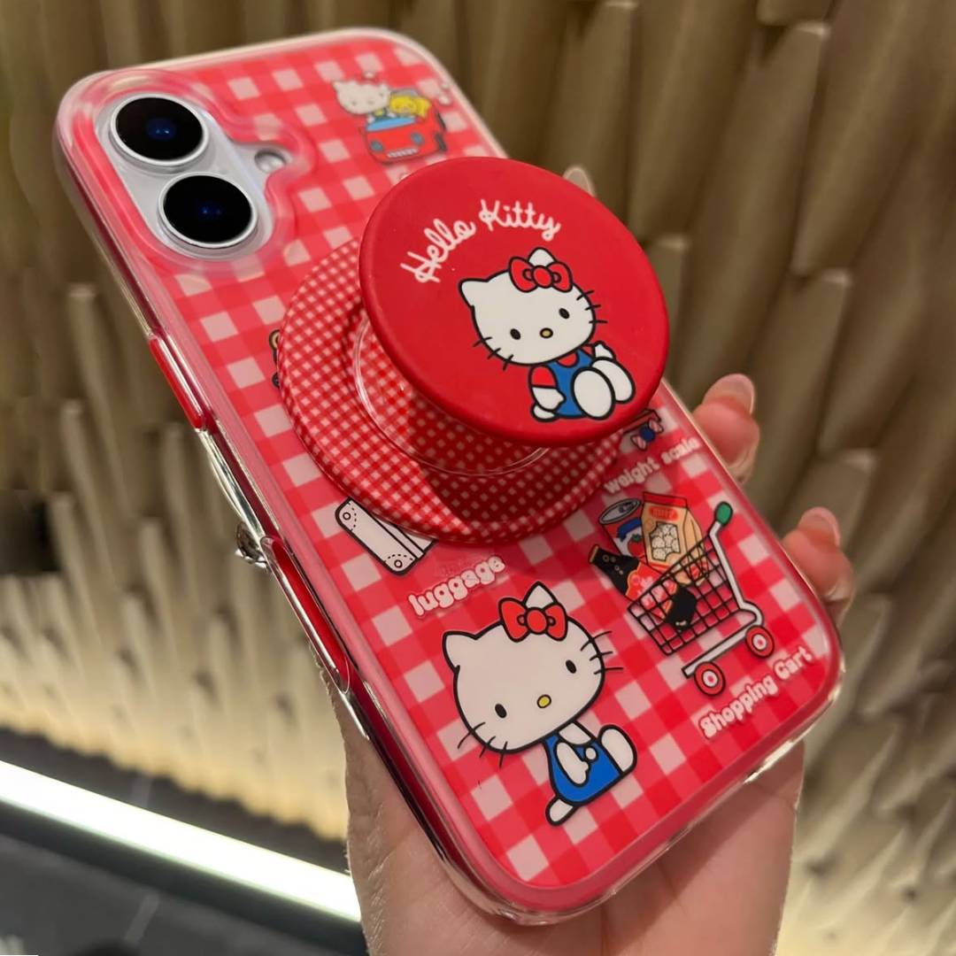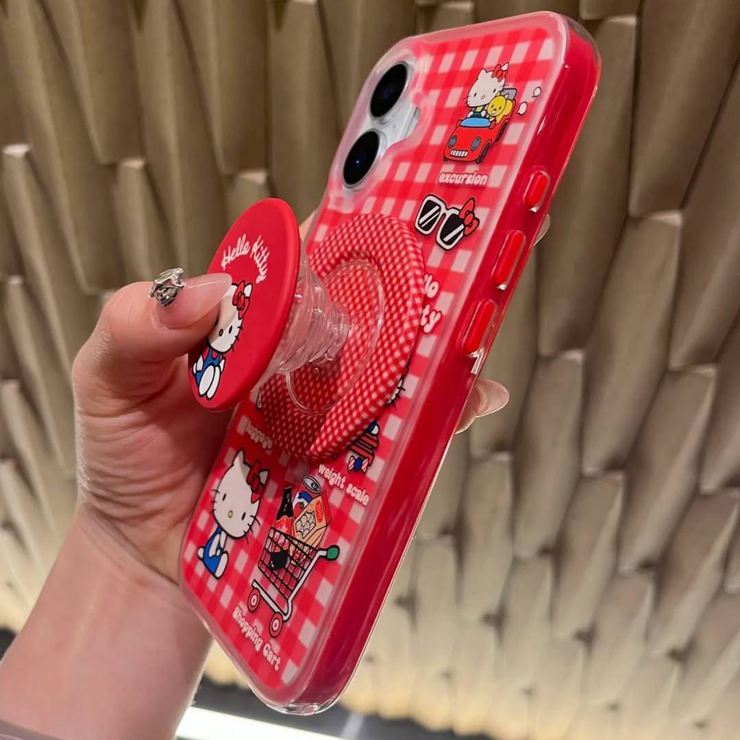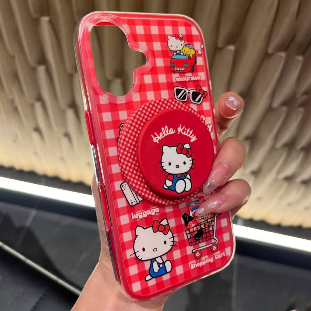 Get ready to shop, roll, and snap in style with Kitty Kart – a lively phone case made for the ultimate Hello Kitty fan on the go. Dressed in a vibrant red gingham print and sprinkled with playful travel icons like shopping carts, sunglasses, and cute luggage, this case is a ticket to kawaii adventures every day.
