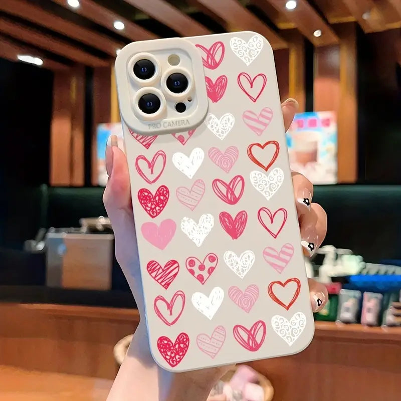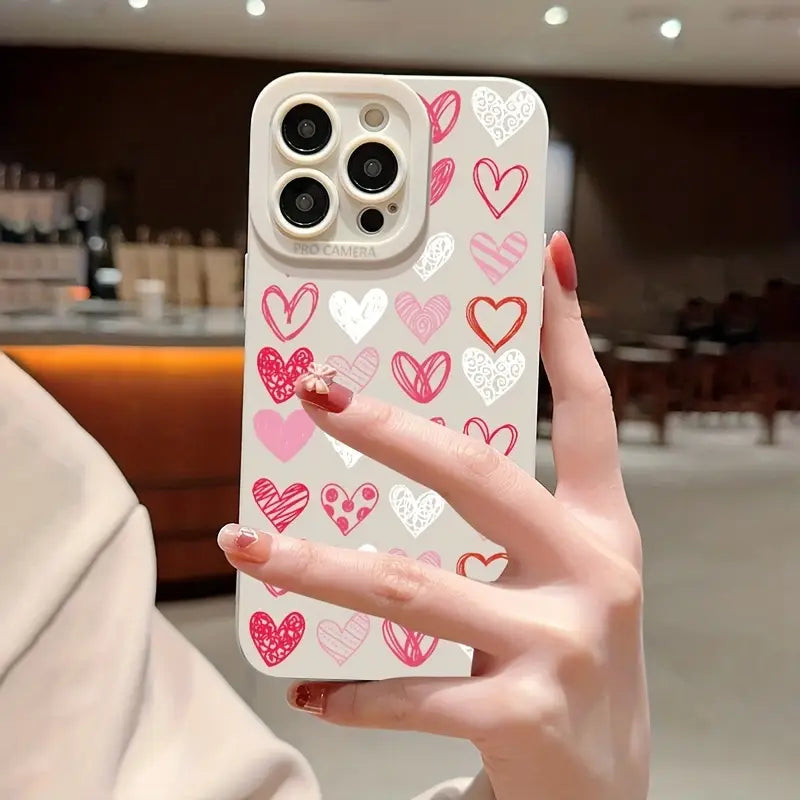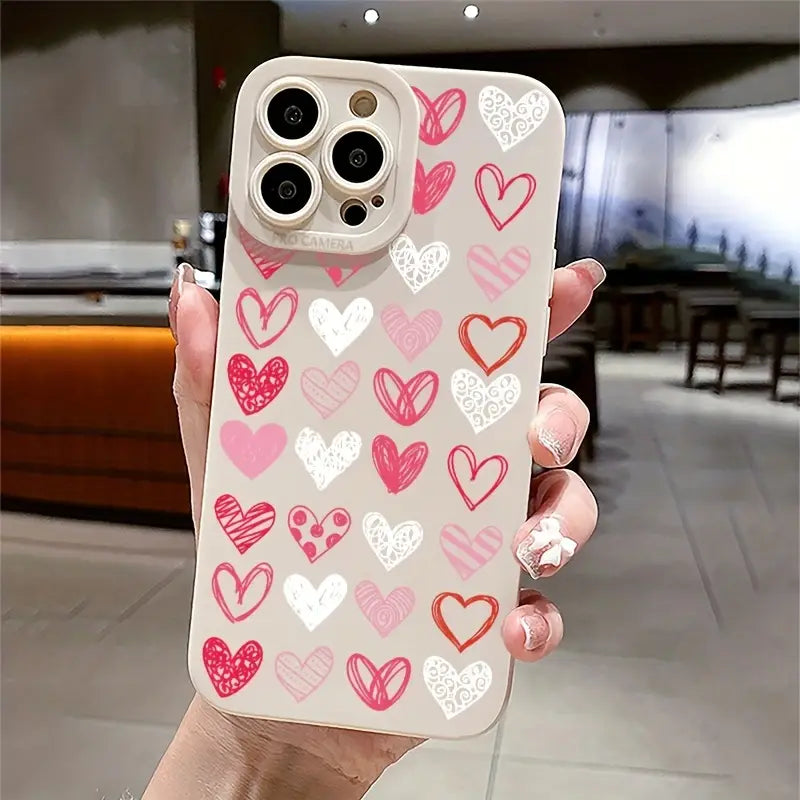 Wrap your phone in a loop of love with this charming case bursting with hand-drawn hearts in playful pinks, reds, and whites. Perfect for romantics at heart, this design feels like a love letter you carry everywhere.