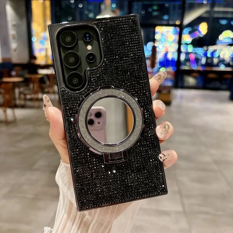 Elevate your phone game with the Luxe Mirror Case where beauty meets brilliance. Designed for the modern glam girl, this luxurious case brings together dazzling rhinestones, a built-in mirror, and smart protection, all in a sleek, electroplated finish.