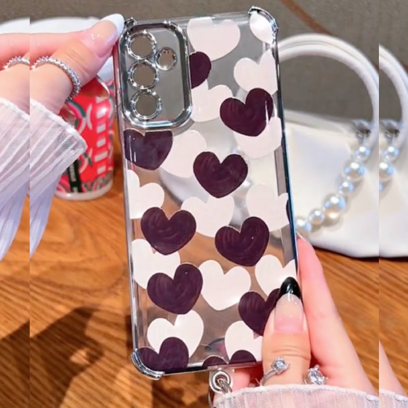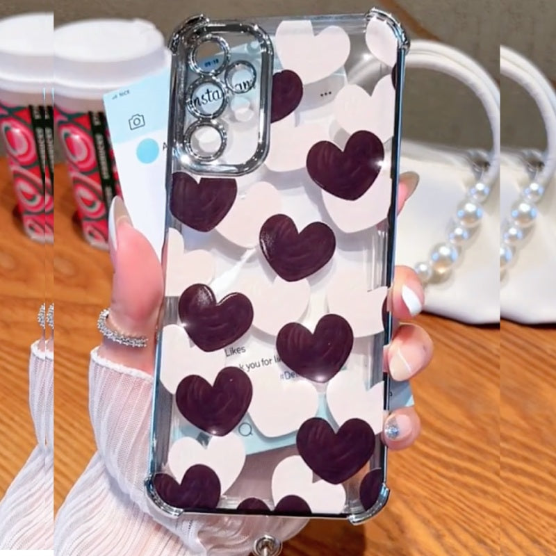 Fall head over heels for the cutest case in town. Featuring a playful mix of deep violet and soft white hearts on a clear base, this case brings a perfect blend of bold and sweet to your everyday style. The doodle-style hearts add a fun, hand-drawn charm, while the crystal-clear shell lets your phone's natural beauty shine through.