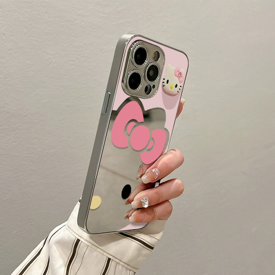 Add a purr-fect touch of charm and sparkle to your phone with the MirrorMeow case. Designed with a glossy mirrored back and a super cute 3D kitty face and bow, this case is the ultimate combo of function and feline fun.