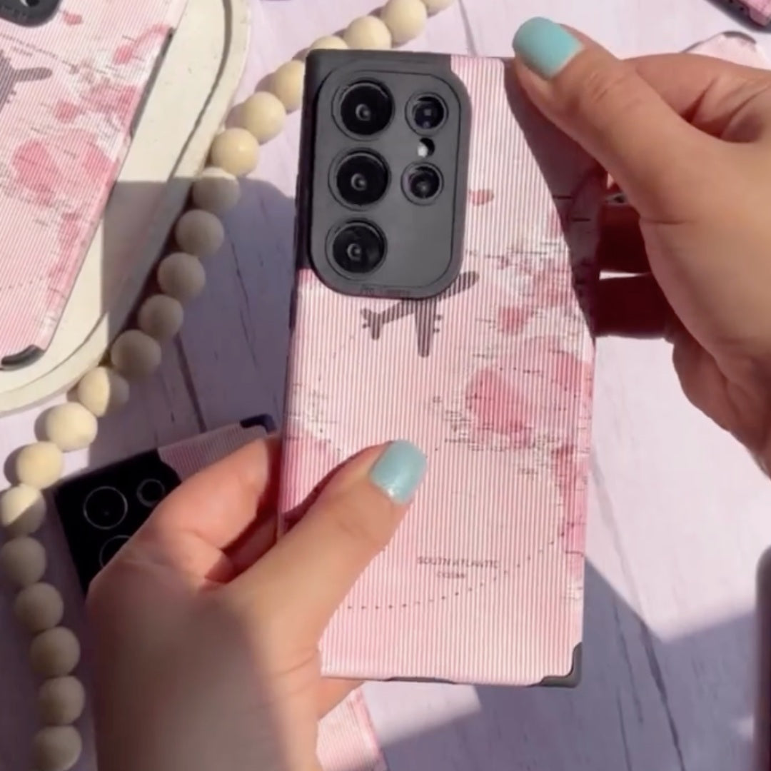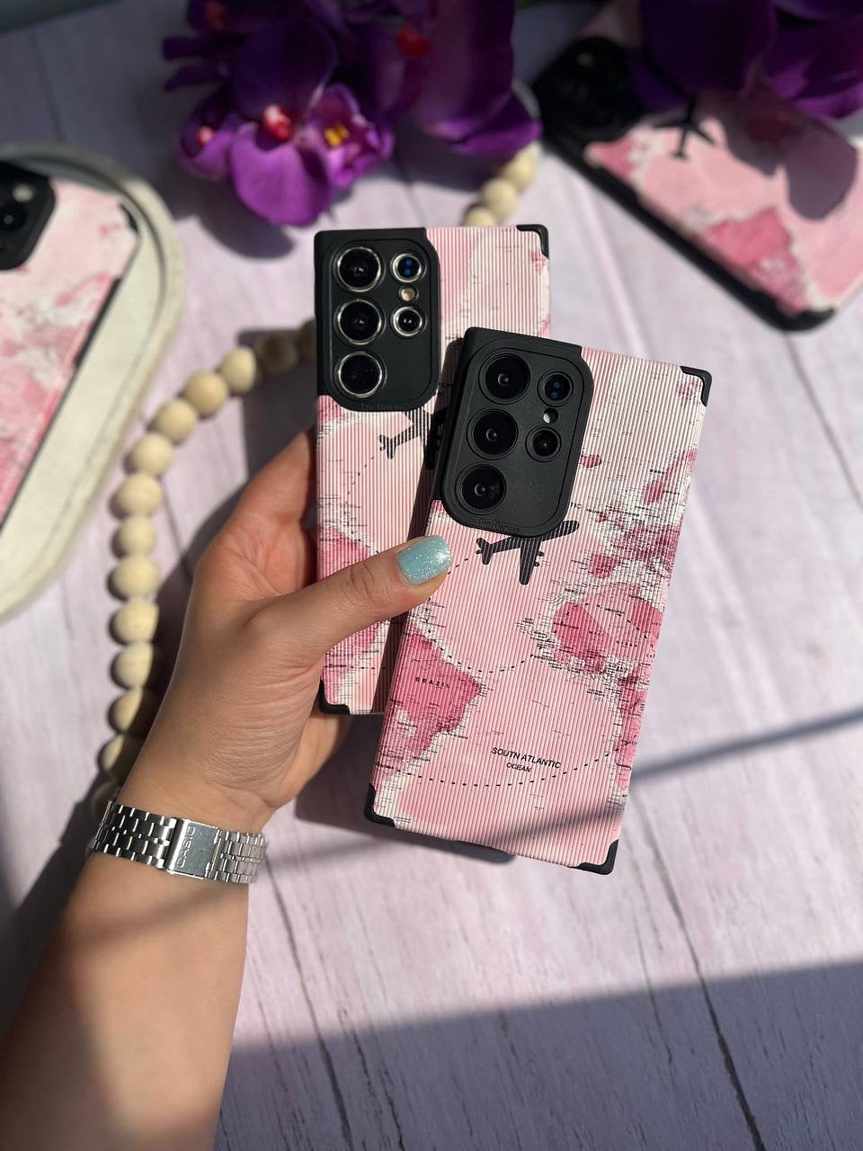 Calling all travel lovers! Our Wanderlust in Pink case is your perfect everyday escape. Featuring a dreamy pastel world map design with a chic airplane icon, this case inspires your next destination every time you pick up your phone. The soft blush tones paired with a durable, anti-scratch surface make it both stylish and practical for life on the go.Â
