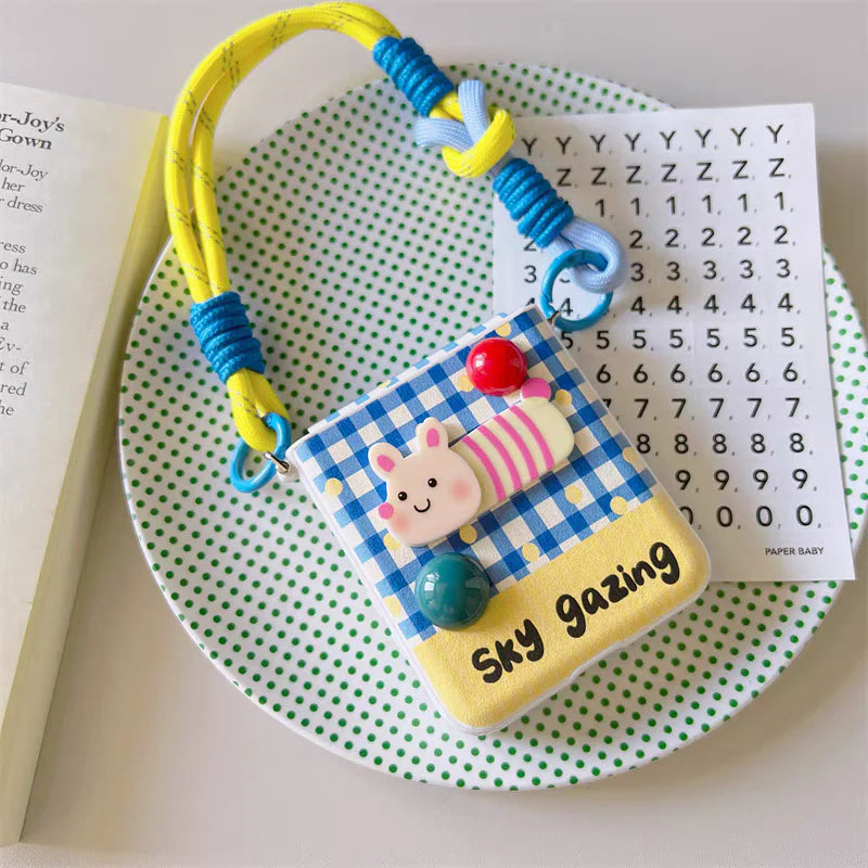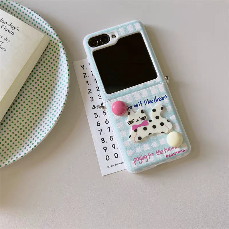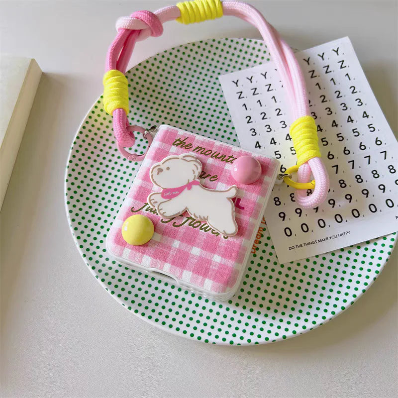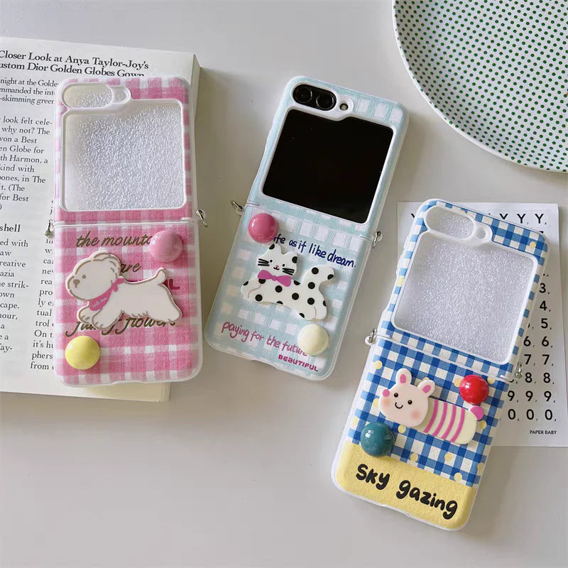 Step into a world of playful charm with Pastel Snaps – a collection of foldable phone cases bursting with personality! These adorable cases feature soft gingham patterns in pastel tones, paired with delightful 3D characters like cuddly puppies, spotty kittens, and smiley creatures. It’s cuteness and color with every flip!