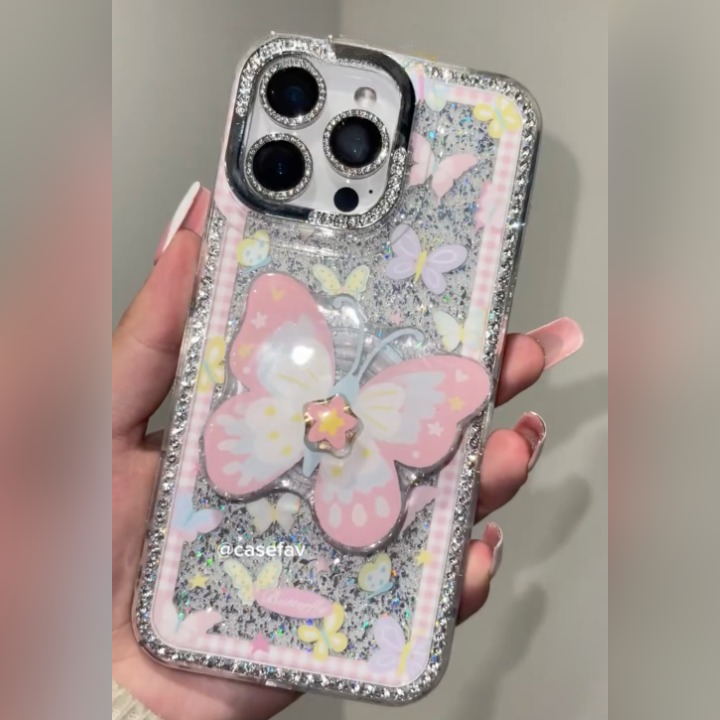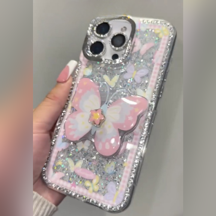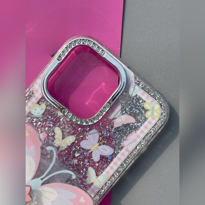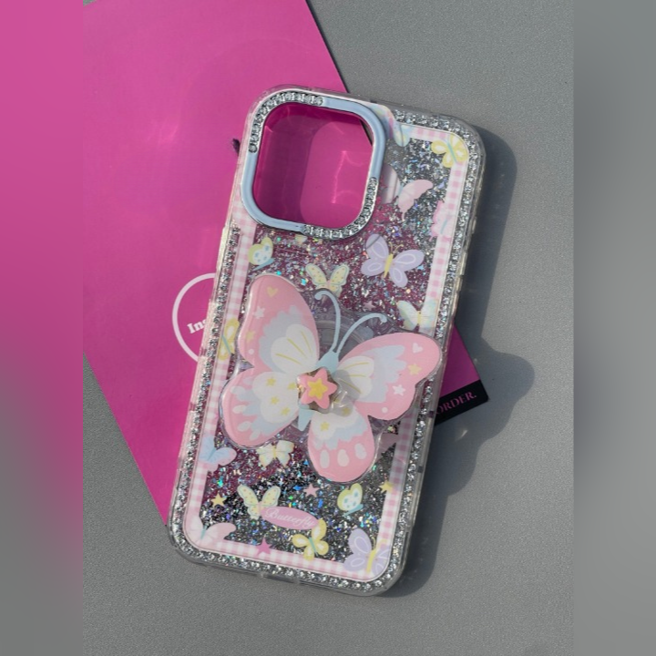 Let your phone take flight with Pixie Wings  a whimsical phone case that turns every mirror selfie into a fairytale. Adorned with soft pastel butterflies, sparkly silver glitter, and a 3D butterfly charm centerpiece.Â