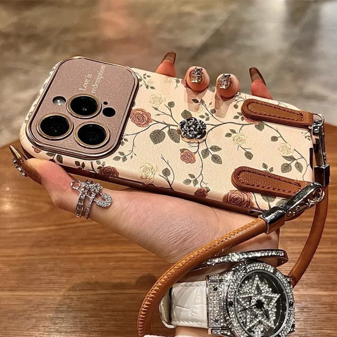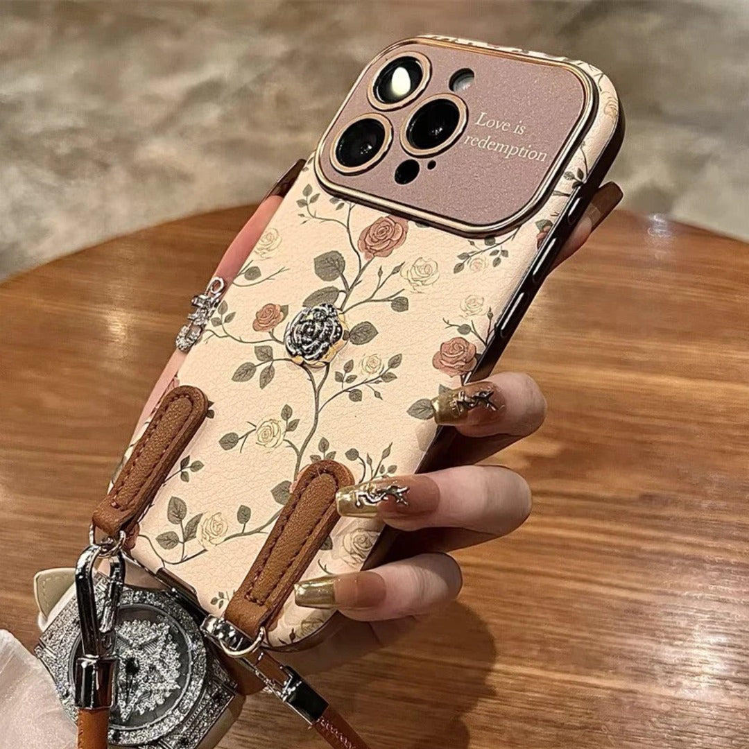 Romantic, refined, and effortlessly chic Roisin is your go-to phone case when you want to bring a touch of vintage elegance to everyday life. Featuring delicate rose patterns, a leather-textured finish, and a detachable crossbody strap, this case is both a fashion statement and a practical companion.