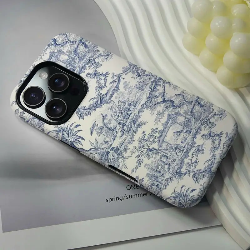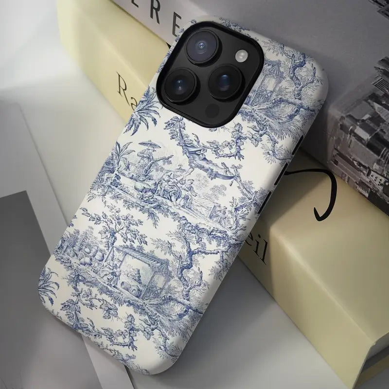 Turn your phone into a canvas of classical charm with Sketch Art, a case that blends timeless beauty with everyday protection. Inspired by vintage Toile de Jouy prints, this case features intricate pastoral scenes sketched in soft blue ink across a creamy white backdrop. It’s a design that feels like a page from a storybook—romantic, graceful, and effortlessly stylish.