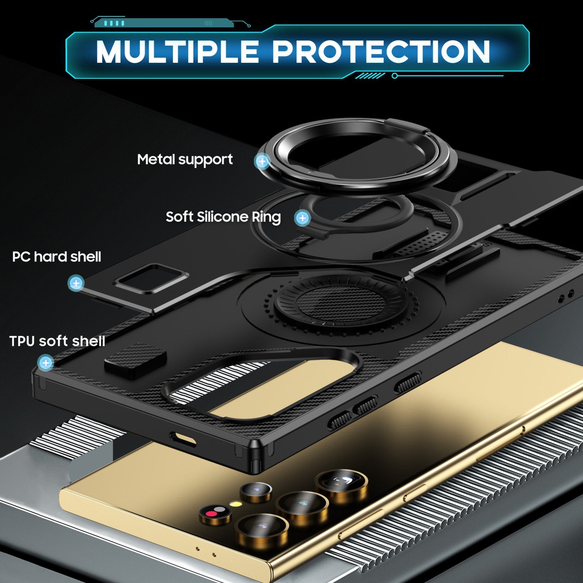 Keep your Samsung cool and protected with the Vent Flow Heat Dissipating Rotating Ring Case. Designed for optimal performance, this case features a breathable heat sink design that helps dissipate heat, preventing your phone from overheating during heavy usage. The 360° rotating ring holder provides a secure grip and doubles as a convenient stand for hands-free viewing.