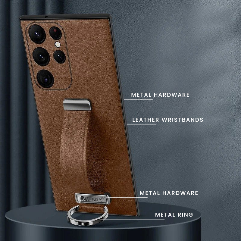 Introducing the Wristband Leather Shockproof Business Case for Samsung, a sophisticated blend of style and protection designed for the modern professional. Crafted with precision and elegance, this case elevates the look of your Samsung device while offering robust shockproof protection for your peace of mind.
